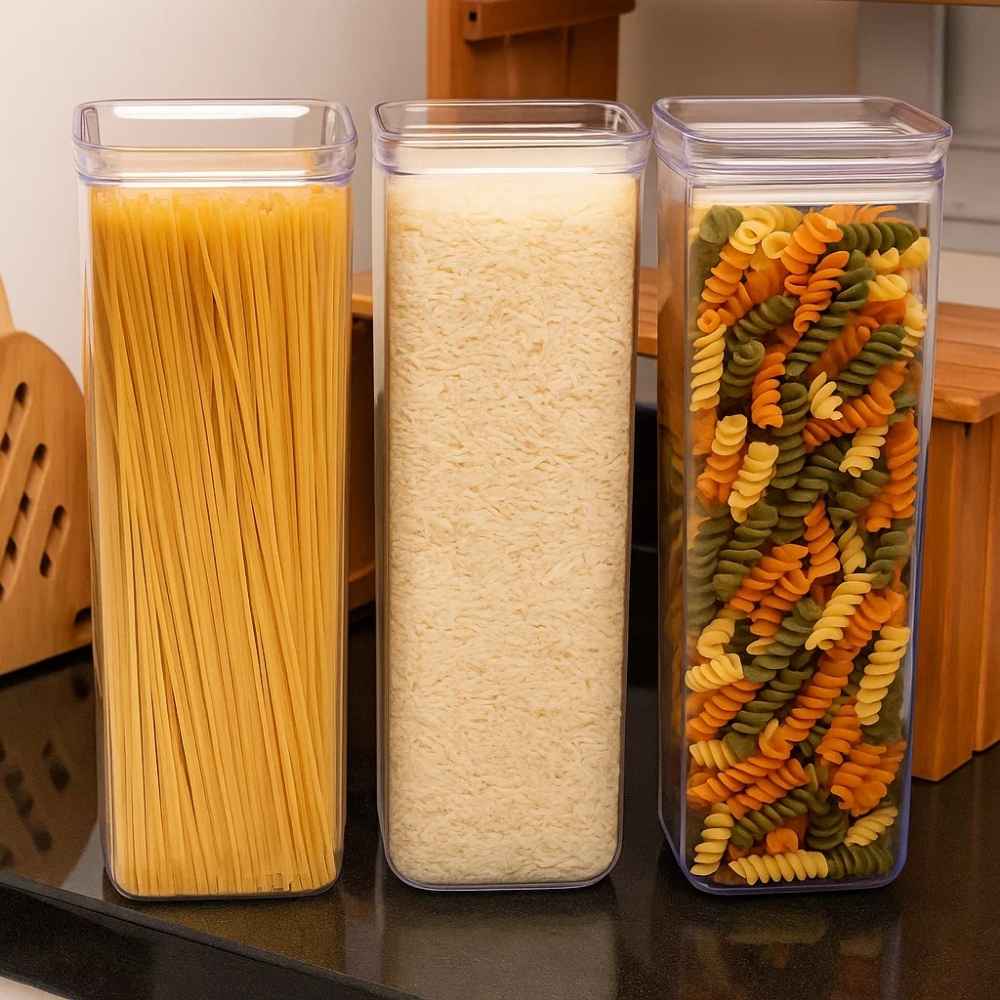 Mantenha sua cozinha sempre em ordem com o Kit de Potes Herméticos Para Cozinha, a solução perfeita para armazenar alimentos secos, grãos, farinhas, massas e muito mais. Com capacidade de 2,2 litros por pote, este conjunto traz praticidade e estética ao seu dia a dia. Seu design empilhável otimiza o espaço nos armários ou prateleiras.